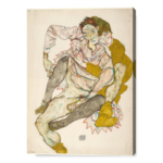 Coppia seduta è uno dei lavori più emblematici di Egon Schiele, un’icona dell’espressionismo austriaco. Questo dipinto rappresenta l’intenso legame tra due figure umane, catturato in una posa avvolgente e complicata. I colori audaci e le linee contorte riflettono la vulnerabilità e il potere delle relazioni umane, un tema ricorrente nell’opera di Schiele. L’artista, noto per il suo stile unico e provocatorio, riesce a trasmettere emozioni profonde attraverso una composizione che sfida le convenzioni, rendendo il vincolo tra i soggetti una dichiarazione di intimità e fragilità. Ogni dettaglio nel dipinto è carico di significato, mostrando il talento di Schiele nel ritrarre l’anima umana.