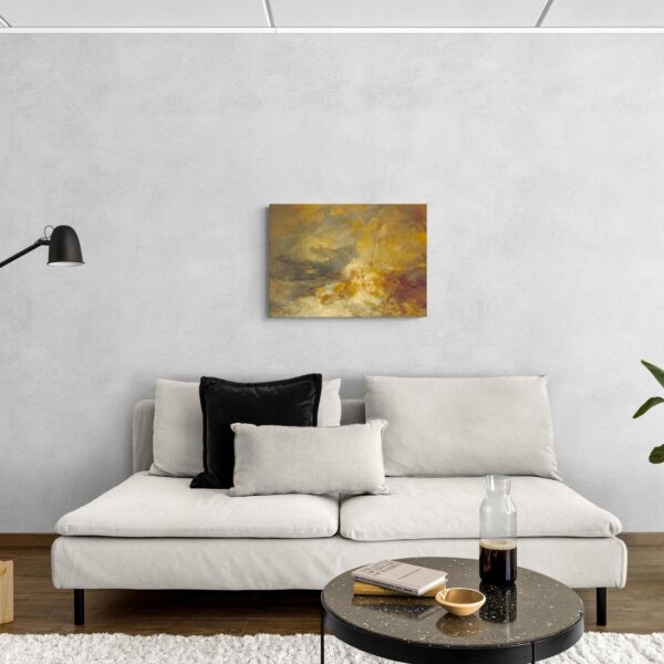 Il capolavoro ‘Disastro in mare’ di William Turner è un’opera che cattura l’essenza della potenza e dell’imprevedibilità degli elementi naturali. Questo dipinto, realizzato nel XIX secolo, rivela il maestoso tumulto delle acque e il dramma della lotta dell’uomo contro la natura. I colori vibranti e le pennellate dinamiche di Turner sembrano suggerire il movimento del mare in tempesta, mentre le navi faticano contro le onde furiose. L’arte di Turner è nota per la sua capacità di evocare emozioni forti, e ‘Disastro in mare’ non fa eccezione, rappresentando un momento di crisi che invita alla riflessione sul rapporto tra l’uomo e il suo ambiente. Questa opera è un esempio perfetto dell’abilità di Turner nel trasmettere la luminosità e il caos della natura attraverso la sua iconica tecnica pittorica.