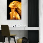 Gold Shower 1 è un’opera che cattura l’essenza della bellezza e della raffinatezza. L’immagine presenta una figura femminile con una pelle splendente e dorata, evocando sensazioni di lusso e opulenza. I riflessi luminosi accentuano i contorni del corpo, mentre la testa è inclinata all’indietro, conferendo un senso di liberazione e gioia. Questa rappresentazione, caratterizzata da un forte contrasto con lo sfondo scuro, attira l’attenzione e trasmette un messaggio di autoconfidenza e glamour. Perfetta per chi cerca ispirazione nel mondo della moda, del bellezza, e dell’arte.
