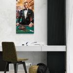 Immergiti nell’atmosfera di un elegante casinò con l’immagine evocativa di un croupier in abito da sera. Questo artwork cattura l’essenza del gioco e della fortuna, dove la tensione e l’eleganza si intrecciano. Con uno sguardo concentrato e una postura sicura, il croupier è al centro dell’azione, pronto a gestire le fiches e a guidare il gioco con maestria. Sullo sfondo, un ambiente vivace di scommettitori e tavoli da gioco completa il quadro, evocando l’emozione di una notte indimenticabile. Scopri l’arte del gioco e lasciati trasportare in un mondo di lusso e avventura.