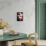 Immergiti in ‘The Dream’, un’opera d’arte che cattura la bellezza dei paesaggi sereni. Le sfumature del cielo al tramonto, illuminate da colori caldi, riflettono su un tranquillo specchio d’acqua. Tutto intorno, una vegetazione lussureggiante e un maestoso vulcano in lontananza creano un’atmosfera incantevole. Questo paesaggio da sogno è arricchito da fiori di loto e palme che danzano dolcemente alla brezza. ‘The Dream’ ti invita a esplorare la serenità e la pace che solo la natura può offrire, trasportandoti in un mondo di contemplazione e meraviglia.