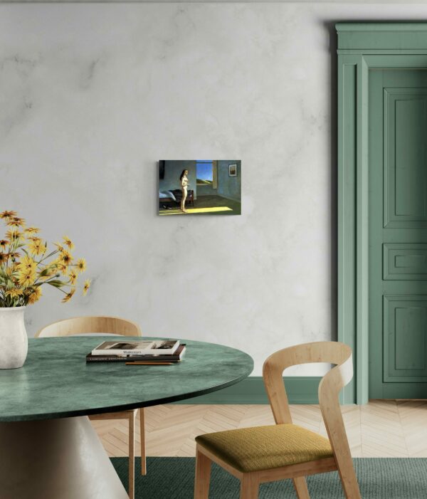 Per ogni prodotto, è possibile visualizzare la sua collocazione in tre ambientazioni tipo. Se sono disponibili più formati di stampa, selezionandone uno si aggiorna anche la simulazione nei vari ambienti, con e senza cornice. Questo ti permette di avere una maggiore consapevolezza nella scelta della dimensione di stampa più adatta al tuo ambiente. Se hai bisogno di ulteriori personalizzazioni, ti invitiamo a contattarci.